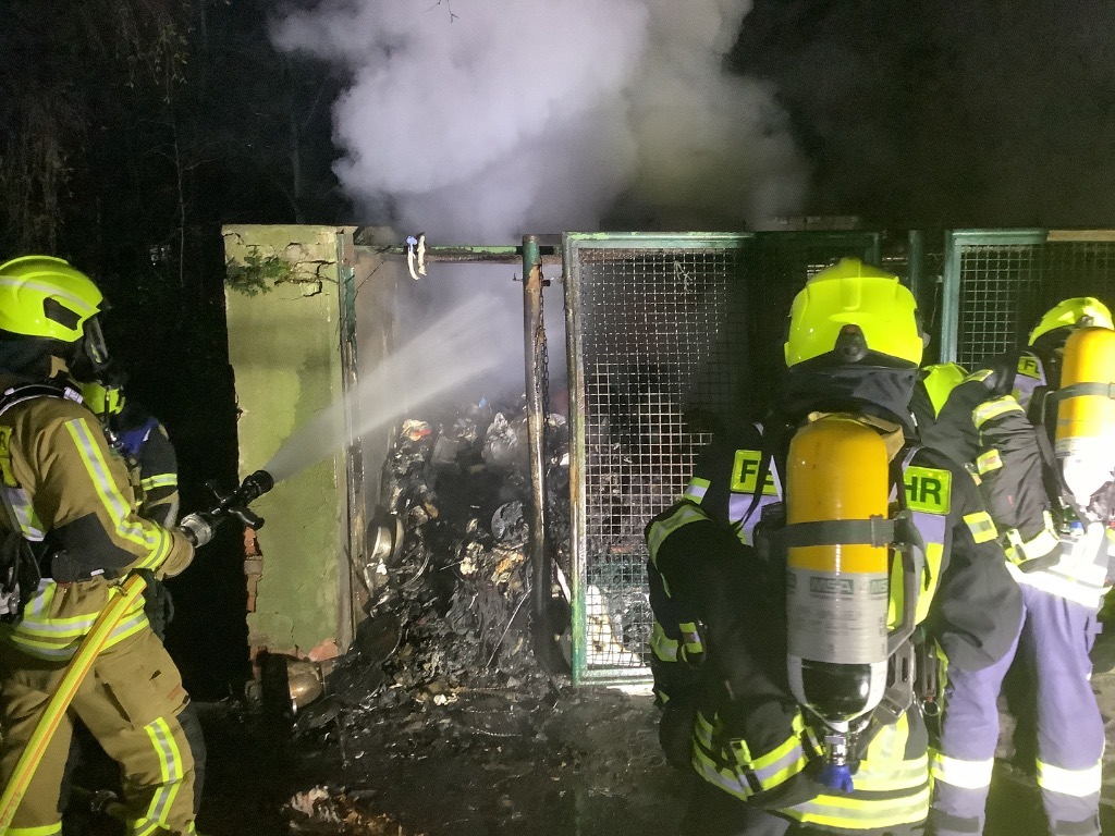 Gegen 19:45 Uhr am heutigen Freitag wurde der Feuerwehrleitstelle Flammenschein auf der Duisburger Straße gemeldet. Da der Anrufer zunächst nur von brennender Vegetation berichtete, wurde zunächst nur ein Löschfahrzeug der Feuerwache 1 zur Einsatzadresse entsandt. Bei Eintreffen der Kräfte war jedoch schnell klar, dass es sich um eine größere Menge brennenden Unrats handelte. Dieser war teilweise im Freien und teilweise in einem ehemaligen Hundezwinger mit angrenzender Stallung gelagert.