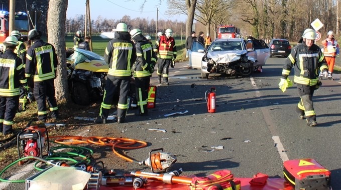 Am Donnerstag, den 25.12.2025, kam es in den Mittagsstunden auf der Kreuzung Mindener Postweg (L802)/Daukuhle zu einem schweren Verkehrsunfall. Vorbehaltlich weiterer Erkenntnisse befuhr ein 66-Jähriger aus Espelkamp mit seinem Ford die Straße Daukuhle in westliche Richtung. Auf der Kreuzung Mindener Postweg/Daukuhle kam es dann zum Zusammenstoß mit dem Pkw Seat einer 36-Jährigen aus Rahden, welche die Straße Mindener Postweg in südliche Richtung befuhr. Durch den Zusammenstoß wurde der Pkw Seat gegen einen Straßenbaum geschleudert. Zum Unfallzeitpunkt war der Pkw Ford mit zwei Fahrzeuginsassen besetzt. Der Fahrzeugführer wurde schwer- die Beifahrerin leicht verletzt. Der Seat war mit drei Fahrzeuginsassen besetzt. Die Fahrzeugführerin wurde leicht verletzt - ihr Beifahrer erlitt schwere Verletzungen. Ein weiterer Mitfahrer, ein 7-jähriges Kind, wurde nur leicht verletzt. Die verletzten Unfallbeteiligten wurden mit Rettungswagen ins Krankenhaus nach Lübbecke bzw. Minden verbracht. Nach derzeitigem Kenntnisstand besteht bei den Verletzten keine Lebensgefahr. An den beteiligten Fahrzeugen entstand erheblicher Sachschaden. Sie wurden sichergestellt. Für die Dauer der Unfallaufnahme wurde die Unfallstelle für den Fahrzeugverkehr gesperrt. Neben den Kräften von Rettungsdienst und Polizei kam auch ein Rettungshubschrauber zum Einsatz.