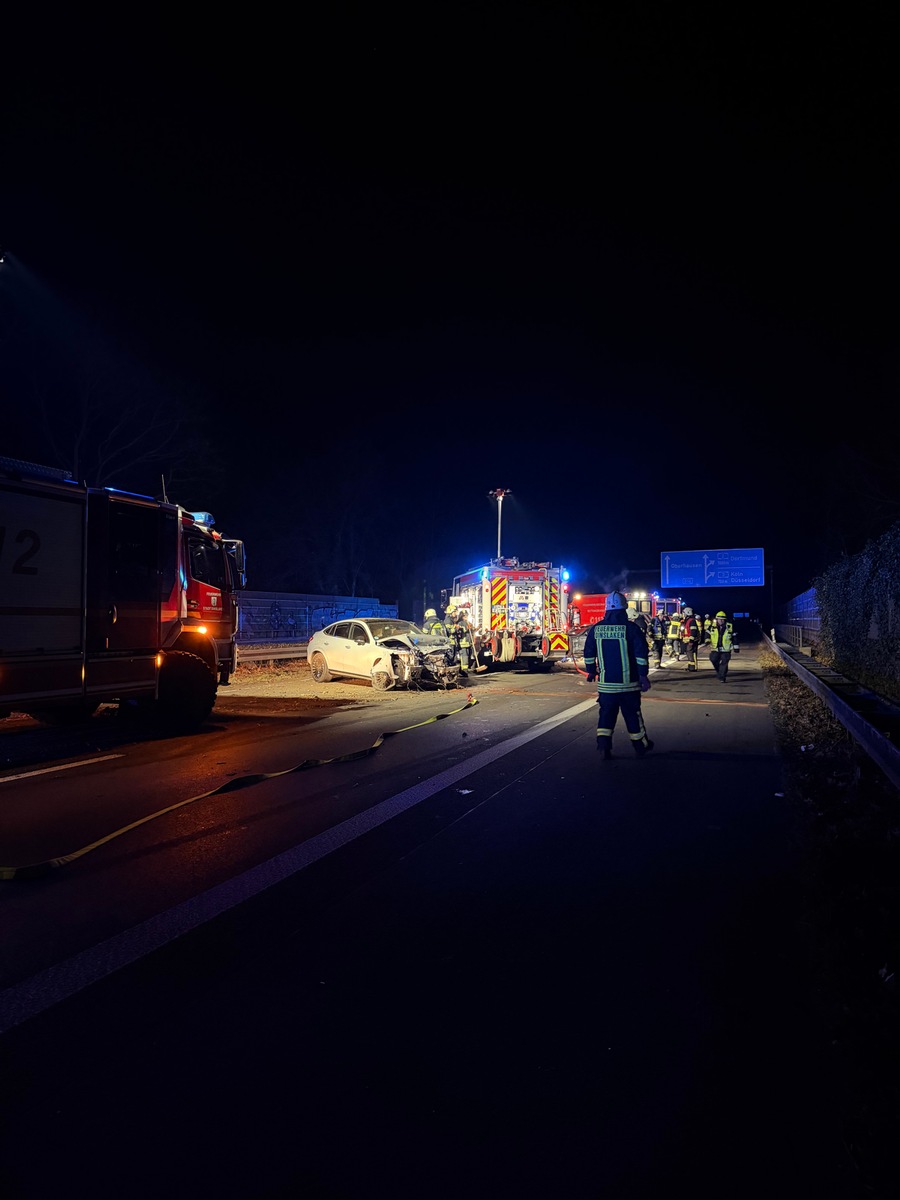 In der Nacht zum 26.12.2025 wurde die Feuerwehr Dinslaken um 00:10 Uhr zu einem Verkehrsunfall auf die BAB 3 alarmiert. In Fahrtrichtung Oberhausen sind nach der Anschlussstelle Dinslaken Süd vier PKW verunglückt. Bereits auf der Anfahrt berichtete die Kreisleitstelle Wesel den anrückenden Kräften von mehreren verletzten Personen. Die ersteintreffenden Einsatzkräfte kümmerten sich umgehend um die Sichtung und Versorgung der verletzten Personen. Weitere nachrückende Einheiten beseitigten die Gefahrenstellen, wie z.b. auslaufende Betriebsstoffe, die von den beschädigten PKW verursacht wurden. Eine Person wurde mit hydraulischem Rettungsgerät aus einem PKW befreit. Insgesamt wurden bei dem Unfall 12 Personen verletzt. Nach rettungsdienstlicher Erstversorgung sind diese mit mehreren Rettungsmitteln der benachbarten Feuerwehren und Hilfsorganisationen zur weiteren Behandlung in umliegende Krankenhäuser transportiert worden. Nach ca. 2,5 std. konnte die Einsatzstelle zu weiteren Ermittlungen an die Autobahnpolizei übergeben werden und die Einsatzkräfte der Feuerwehr einrücken. Für die Dauer der Patientenversorgung und der Gefahrenabwehr war die BAB 3 in Fahrtrichtung Oberhausen gesperrt.
