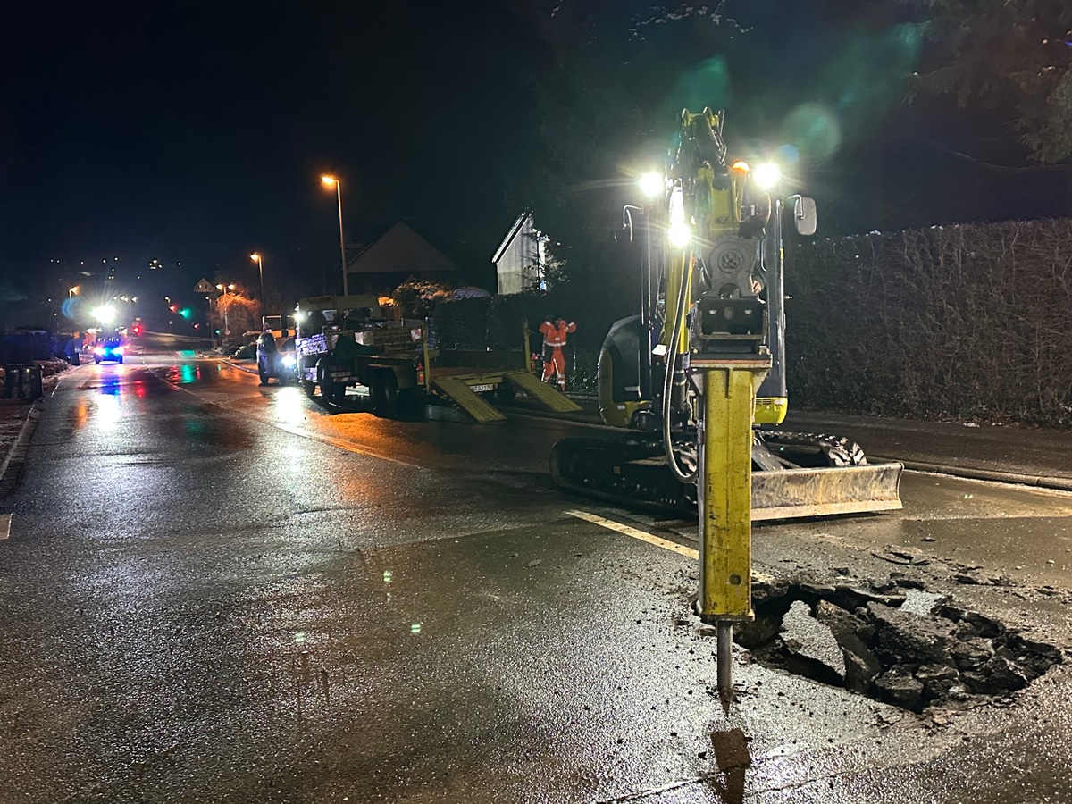Noch in der Nacht wurde ein durch die AVU beauftragtes Tiefbauunternehmen tätig, um die Fahrbahn auf der Bochumer Straße zu öffnen.