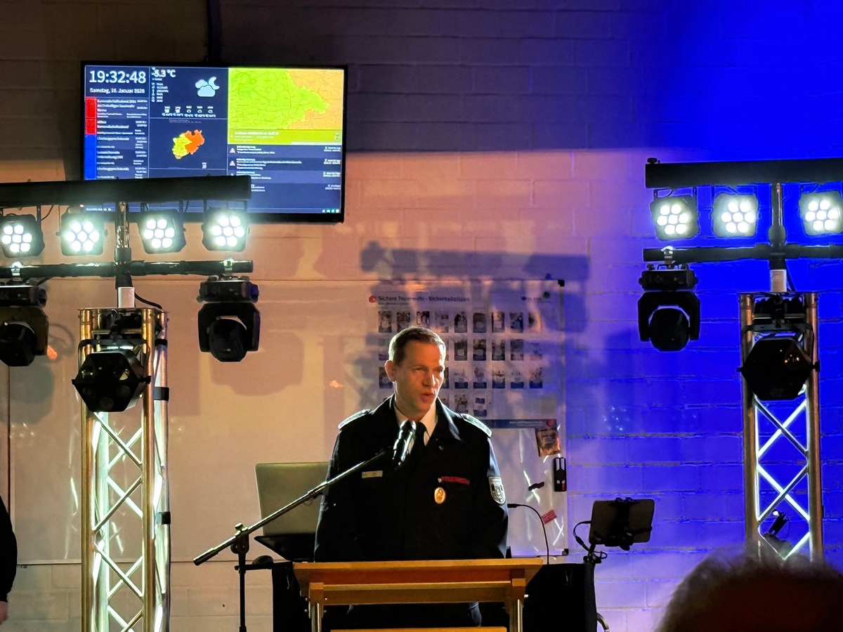 Die festliche Gestaltung der Fahrzeughalle war bereits am Vorabend durch ehrenamtliche Einsatzkräfte erfolgt. Leiter der Feuerwehr Tobias Tenk eröffnete den Abend, begrüßte die Gäste und stellte die Einsatzzahlen des vergangenen Jahres vor. Zudem gab er einen Ausblick auf geplante Investitionen und Entwicklungen für das Jahr 2026. Im Mittelpunkt standen die 418 Einsätze, die die Freiwillige Feuerwehr Werne im Jahr 2025 bewältigte und die erneut die Vielseitigkeit sowie die hohe Einsatzbereitschaft der Wehr unter Beweis stellten.