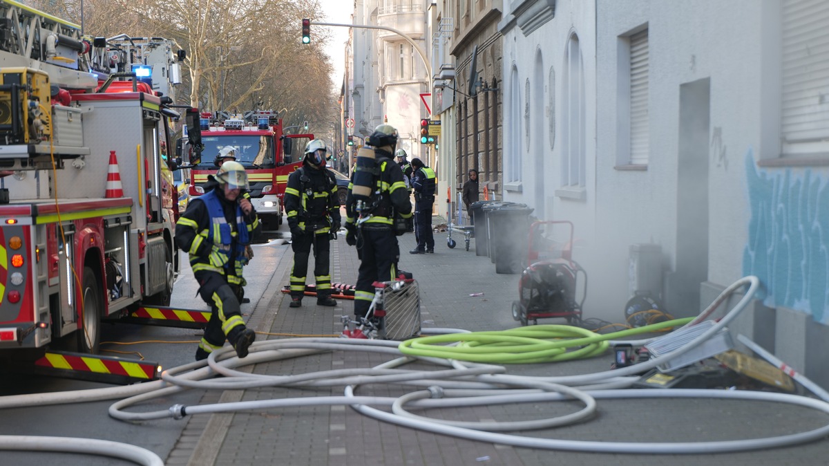 Gegen 14:10 Uhr alarmierte die Einsatzleitstelle der Feuerwehr zwei Löschzüge zu einem über Notruf gemeldeten Kellerbrand in einem Haus auf der Mallinckrodtstraße, zwischen der Brunnenstraße und der Bornstraße.