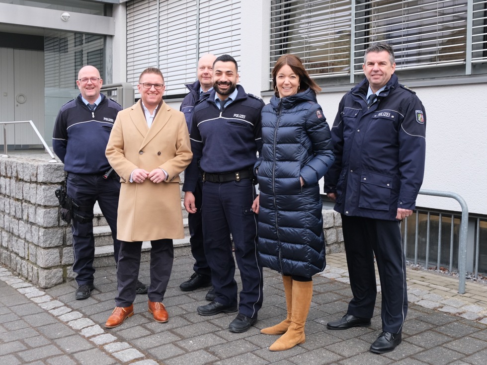 Bild (v.l.n.r.): Polizeihauptkommissar Cord Seja, Bürgermeister Robin Rieksneuwöhner, Polizeihauptkommissar Andreas Möllenhoff, Polizeihauptkommissar Christian Demir, Landrätin Ina Laukötter und Abteilungsleiter Polizei LPD Holger Meier
