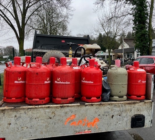 Bei dem Fahrzeug handelte es sich um einen Kleintransporter (Peugeot Boxer, 3,5 t, offener Kasten). Im Rahmen der Kontrolle wurden auf der Ladefläche mehrere Propangasflaschen sowie Dieselkraftstoff in Kanistern festgestellt. Nach ersten Ermittlungen befanden sich unter anderem rund zehn Propangasflaschen (teilweise gefüllt) sowie mehrere mit Diesel befüllte Kunststoff- und Metallkanister auf der Ladefläche.