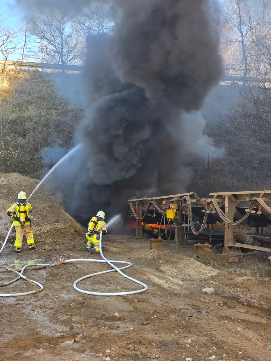 FW Grevenbroich: Zwei Verletzte bei Brand in Bergbaubetrieb Zahlreiche Feuerwehrkräfte im Einsatz
