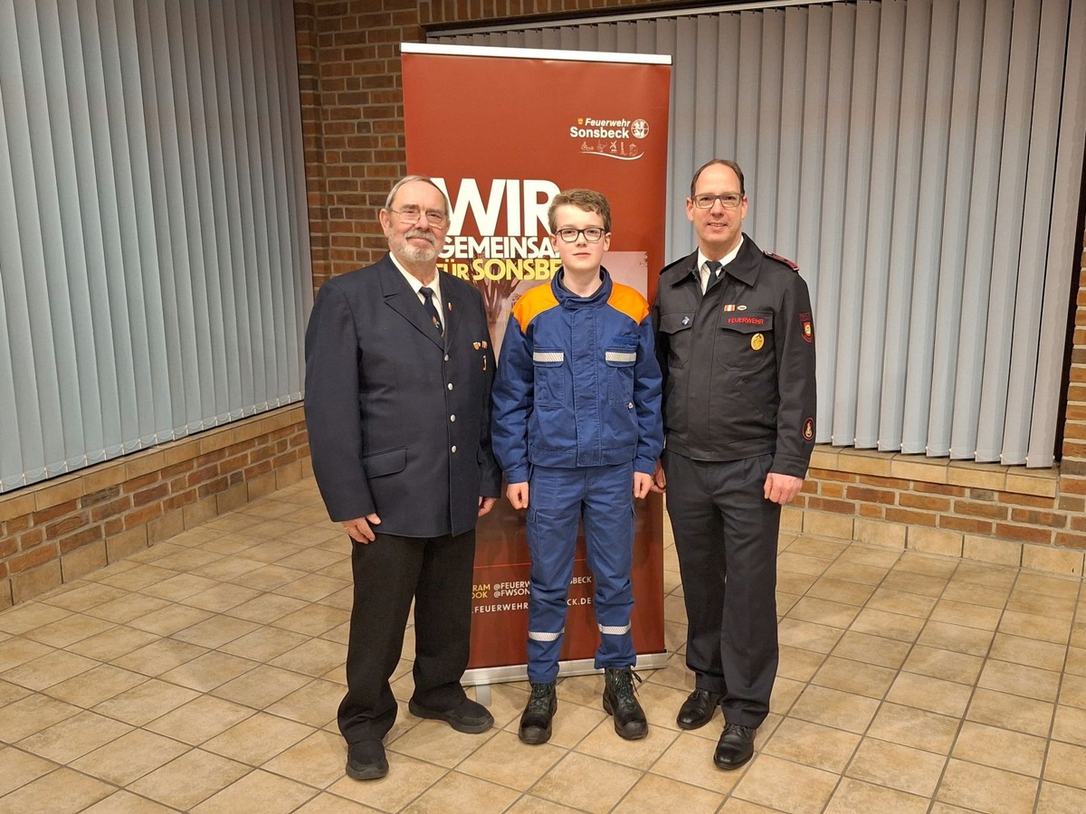 Am Rande der Versammlung ergab sich die Gelegenheit für ein besonderes Familienfoto: Nach der Aufnahme von Felix Hanßen in die Jugendfeuerwehr sind drei Generationen einer Familie in der Feuerwehr Sonsbeck engagiert: Felix' Großvater Johannes Hanßen trat 1970 in die Feuerwehr Sonsbeck ein, war lange Zeit der Gerätewart der heutigen Einheit Sonsbeck und gehört mittlerweile der Ehrenabteilung an. Felix' Vater Norbert gehört seit 1989 der Feuerwehr Sonsbeck an und ist heute u. a. in der Einheit Sonsbeck und als Jugendfeuerwehrwart aktiv.