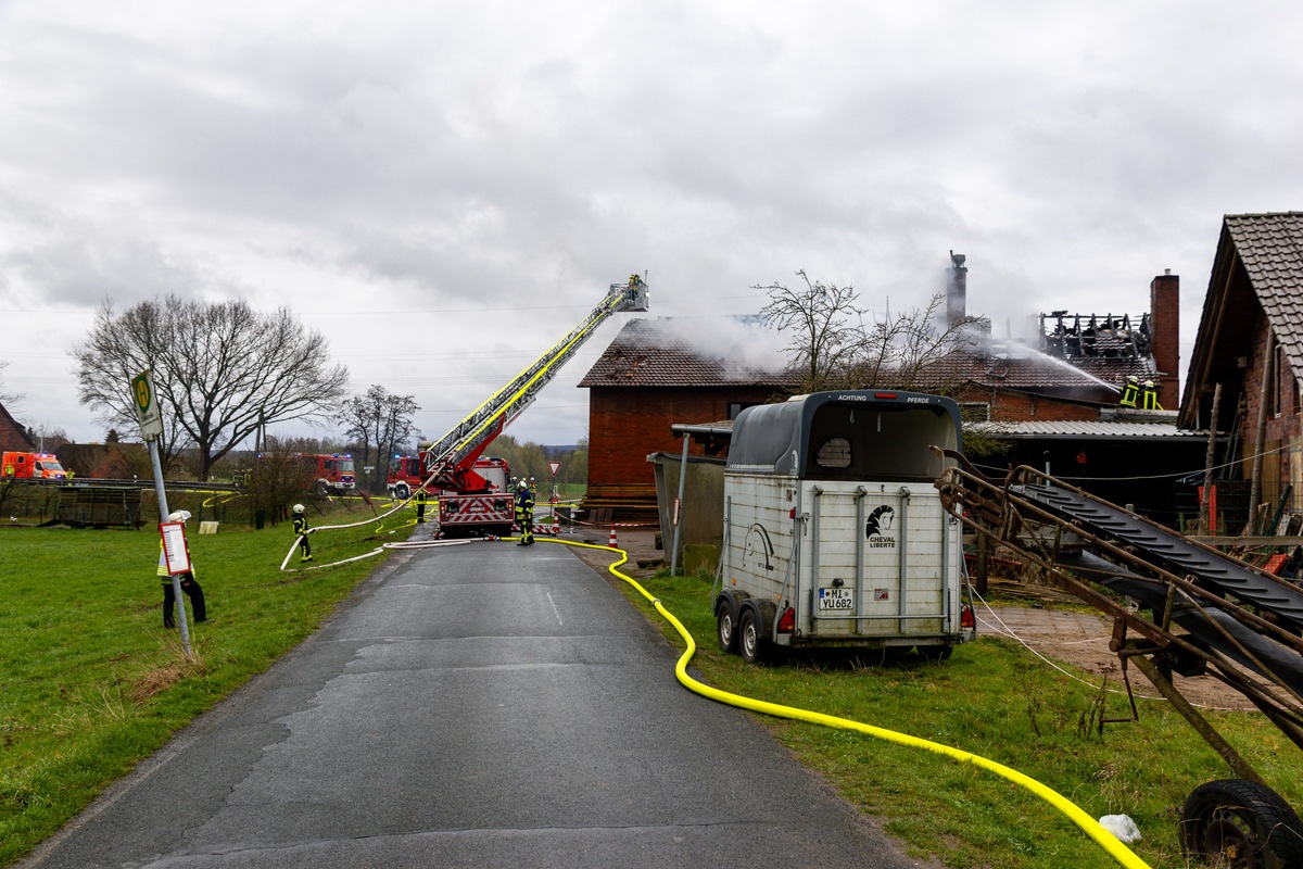 Einsatzleiter: Fabian Schulte; eingesetzte Kräfte vor Ort: Hauptamtliche Feuer- und Rettungswache, Ehrenamtliche Löschgruppen: Hausberge-Lohfeld, Holzhausen, Neesen-Lerbeck (Grundschutz Wache), Eisbergen, Veltheim-Möllbergen, Kleinenbremen-Wülpke, Nammen, Einsatzdokumentation, Einsatzführungsdienst Feuerwehr Rinteln mit Drehleiter und TLF 4000 Rettungsdienst FW Porta, RTW DRK Hille Stadtwerke, Bauordnungsamt, Energieversorger, Polizei. Ca. 110 Einsatzkräfte. Einsatzende: 15:00 Uhr.