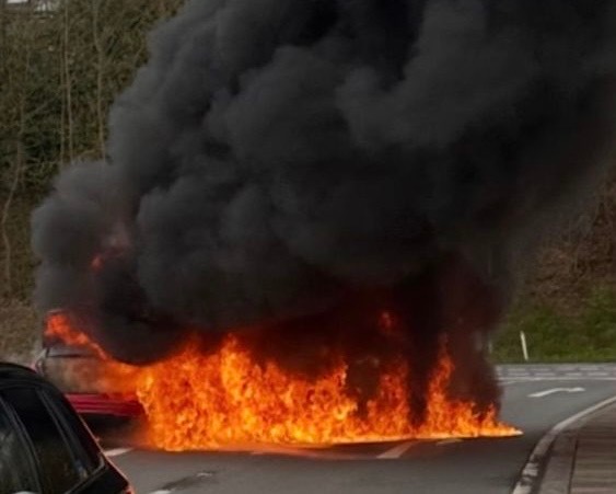 Um 17:00 Uhr wurde ein brennendes Fahrzeug im Bereich der Autobahnabfahrt der BAB 3 gemeldet. Beim Eintreffen der Einsatzkräfte stand der PKW bereits in Vollbrand.