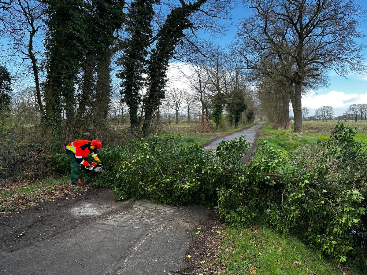 Am Montag wurde der Löschzug Schermbeck um 16:10 Uhr mit dem Einsatzstichwort "Sturmschaden" zur Straße Zur Waldheide alarmiert.