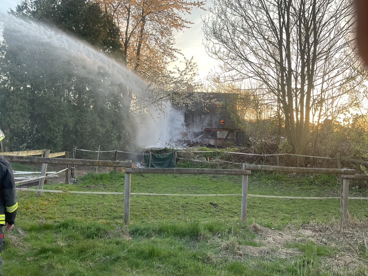 Am 06.04.2026 wurde die Feuerwehr Dortmund gegen 19 Uhr zu einer brennenden Hütte nach Bövinghausen alarmiert. Bereits auf der Anfahrt war eine Rauchsäule zu erkennen und bei Eintreffen bestätigte sich die Meldung: Einige Räume einer alten Hütte standen in Flammen. Da sich die Einsatzstelle an der Grenze zu Castrop befindet, wurde auch die Nachbarfeuerwehr mit alarmiert, konnte aber nach kurzem Treffen an der Einsatzstelle wieder einrücken.