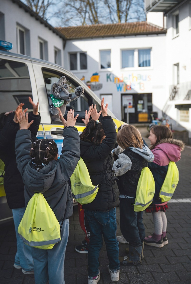 Die Entscheidung fiel schließlich auf den Namen Bruno. Der Vorschlag stammt von den Kindern der Kita Die Wilde 13 in Bielefeld. Als kleines Dankeschön besuchte Bruno die Kita nun persönlich - gemeinsam mit seinen Kolleginnen und Kollegen aus dem Bereich Verkehrsunfallprävention und Opferschutz. Dabei wurde den Kindern eine kleine Überraschung überreicht.