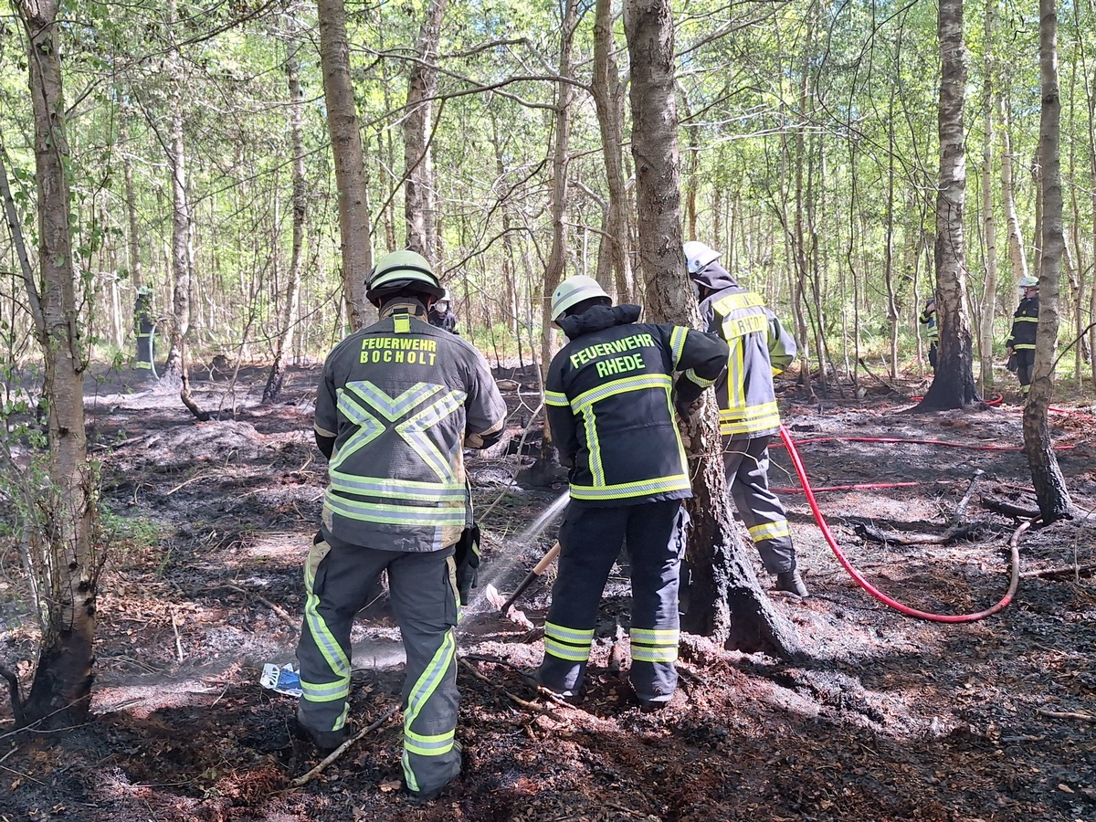 Um ca. 14:20 Uhr wurde die Feuerwehr und der Rettungsdienst der Stadt Bocholt zu einem Waldbrand an der Straße Kotts Stegge im Ortsteil Barlo alarmiert.